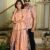 Couple Matching Pink Cotton Anarkali Midi Dress and Shirt Set ? White Handblock Leaf Print