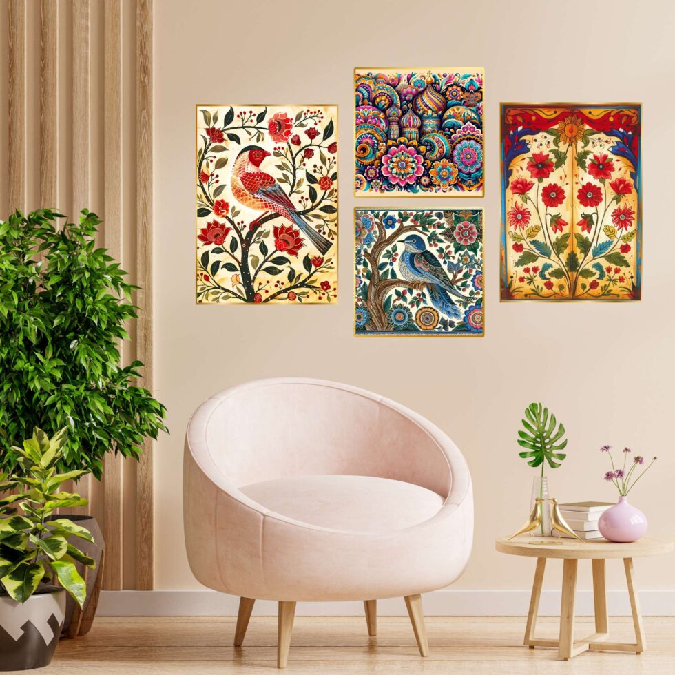 wall paintings, designed to elevate any room with their vibrant traditional charm. Perfect for a variety of settings, these intricate pieces are ideal for wall decor, whether you’re seeking artwork for your living room or bedroom. Our collection includes bold and large wall paintings that create a striking focal point, especially as big wall paintings for the living room. paintings are perfect for home decoration, seamlessly fitting into any space as wall art for living rooms or framed wall paintings for bedrooms. Whether you choose wall paintings with frames for the living room or bedroom, these pieces add an elegant, cohesive touch to your decor. Beyond living areas, these paintings also make beautiful kitchen wall decor and versatile wall hanging options. Enhance your living room wall decor with framed wall art that complements any style. Choose from various formats, including wall paintings golden frame,allowing you to customize your space with ease. Each painting blends traditional and abstract styles, offering both framed wall paintings and wall art decor that fit effortlessly into any room. Explore the beauty of art and bring a touch of culture and sophistication to your home with these exquisite wall paintings for decoration.